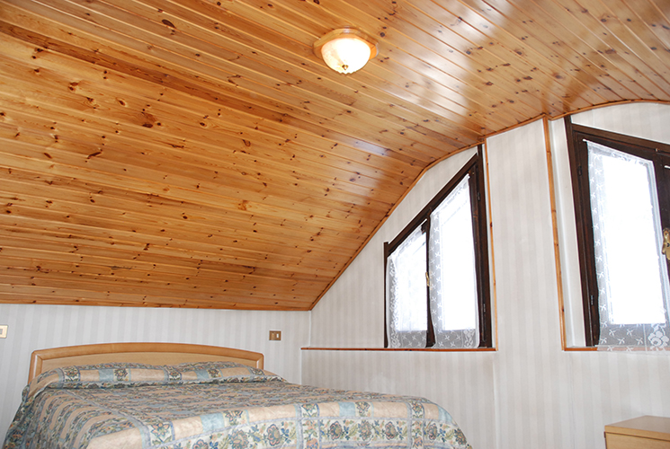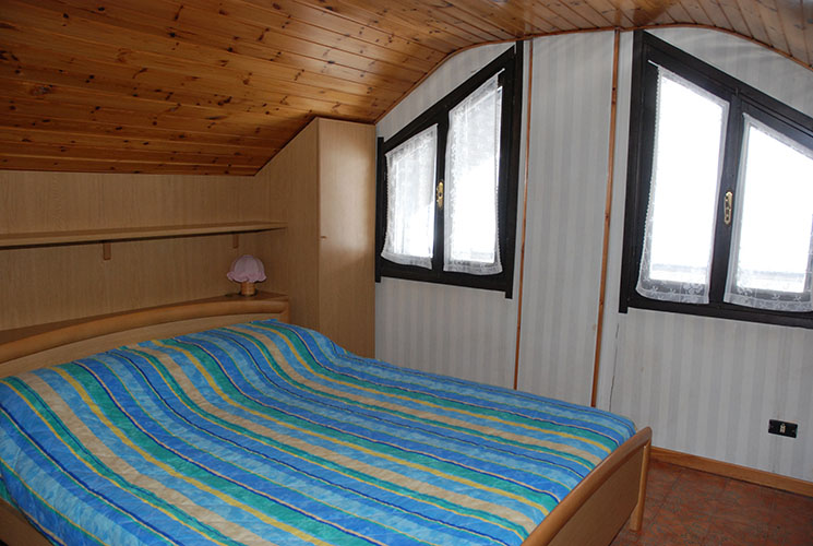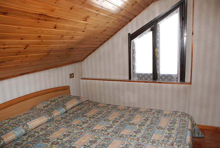 APPARTAMENTO 12 su due livelli: primo livello con soggiorno, cucina, bagno di servizio e balcone; secondo livello mansarda collegato da scala a chiocciola, camera matrimoniale, camera con due letti singoli e bagno con vasca.